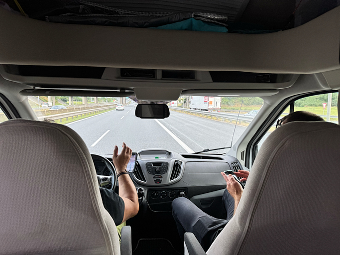 After the first day, we stayed overnight at a campsite in Prague. That’s a story on its own, because sleeping in a camper with three guys isn’t exactly ideal — every movement in bed woke the others up.