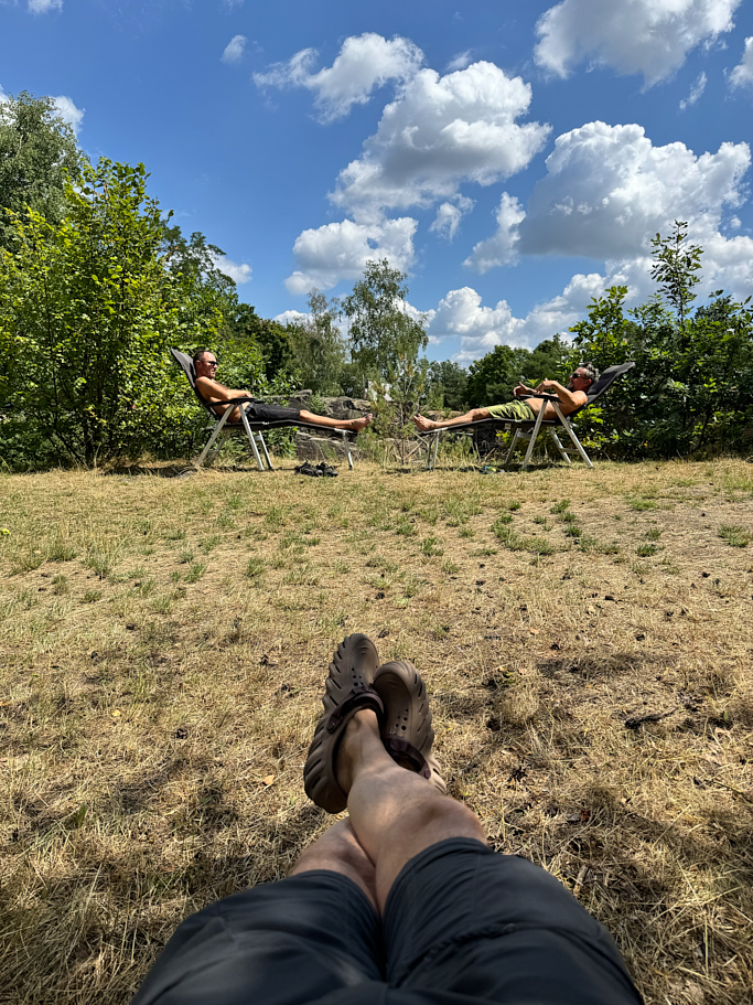 On the second day, we found out that the shoot was cancelled due to the model’s illness. We didn’t want to waste the time, so on the way home we stopped at a few quarries in South Bohemia, went for a swim, relaxed a bit, had a beer… just an easygoing stop and that kind of simple loafing around we’re actually pretty good at.